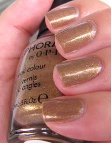 I have a Sephora by OPI polish for you today! This one is called I Only Shop Vintage. This name fits the color so well! I don't know what it is about this color, but it definitely looks vintage doesn't it? It is really a gold with a creamy base, which makes it really unique. Usually gold looks really metallic, but this is really more of a toned down color. All of the photos below were taken outdoors with natural lighting.